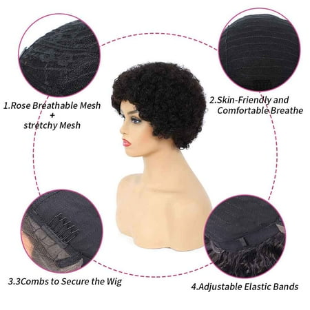 Short Curly Human Hair Wigs Afro Wigs For Black Women Short Summer Afro Kinky Curly Wigs Brazilian Human Hair Natural Black Color 6 Inch 1b Walmart Canada